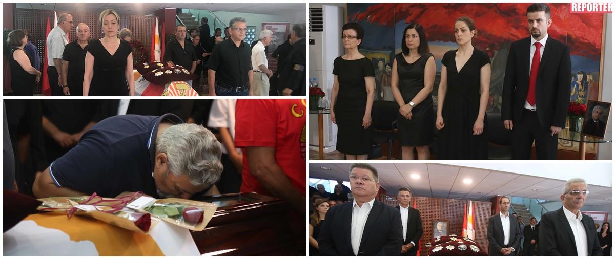 Εκεί, και οι στενοί συνεργάτες του Δημήτρη Χριστόφια με τον Γενικό Γραμματέα του ΑΚΕΛ Άντρο Κυπριανού, τα μέλη της Γραμματείας του Πολιτικού Γραφείου και άλλους αξιωματούχους του κόμματος, εμφανώς συγκινημένους να δέχονται και αυτοί τα συλλυπητήρια των πολιτών.