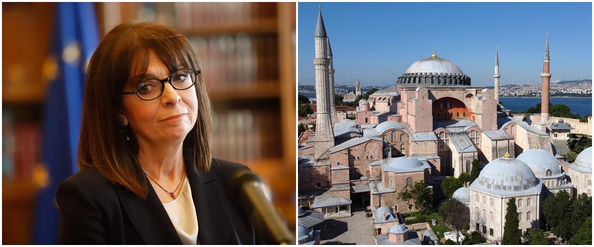Όπως σημείωσε, σε ανακοίνωσή της, η κ. Σακελλαροπούλου, η απόφαση της Τουρκίας για μετατροπή του χαρακτήρα της Αγίας Σοφίας προκαλεί την ιστορική μνήμη και υπονομεύει τις προοπτικές διαλόγου των θρησκειών.