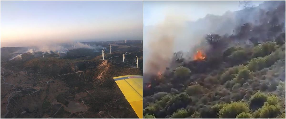 Από ύψος σημείωσε ο κ. Νικολάου η καμμένη γη μοιάζει με βομβαρδισμένο τοπίο, ενώ εξέφρασε την ικανοποίηση του που αν και επηρεάστηκε το Αιολικό πάρκο εντούτοις,  δεν προκλήθηκαν ζημιές στις ανεμογεννήτριες που υπάρχουν σ’ αυτό.