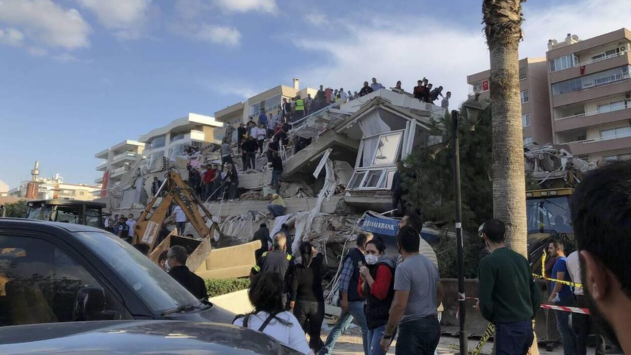 Μεταξύ των κτηρίων που κατέρρευσαν είναι και ένα 13όροφο κτήριο στη συνοικία Μπουρνόβα της Σμύρνης.