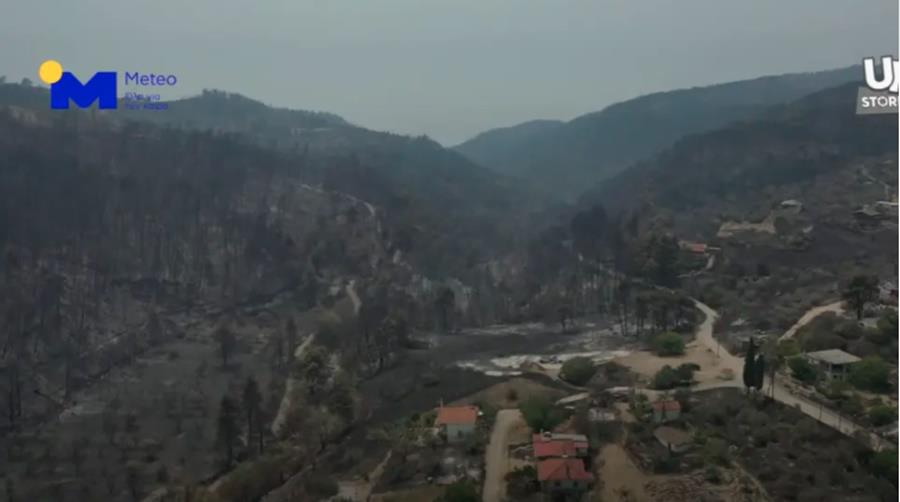 Το βίντεο παρουσιάζει εικόνες καταστροφής από το εσωτερικό έως τις ακτές της Εύβοιας, καθώς και ενεργές εστίες πυρκαγιάς που μαίνονταν ανεξέλεγκτες για πέμπτη ημέρα.