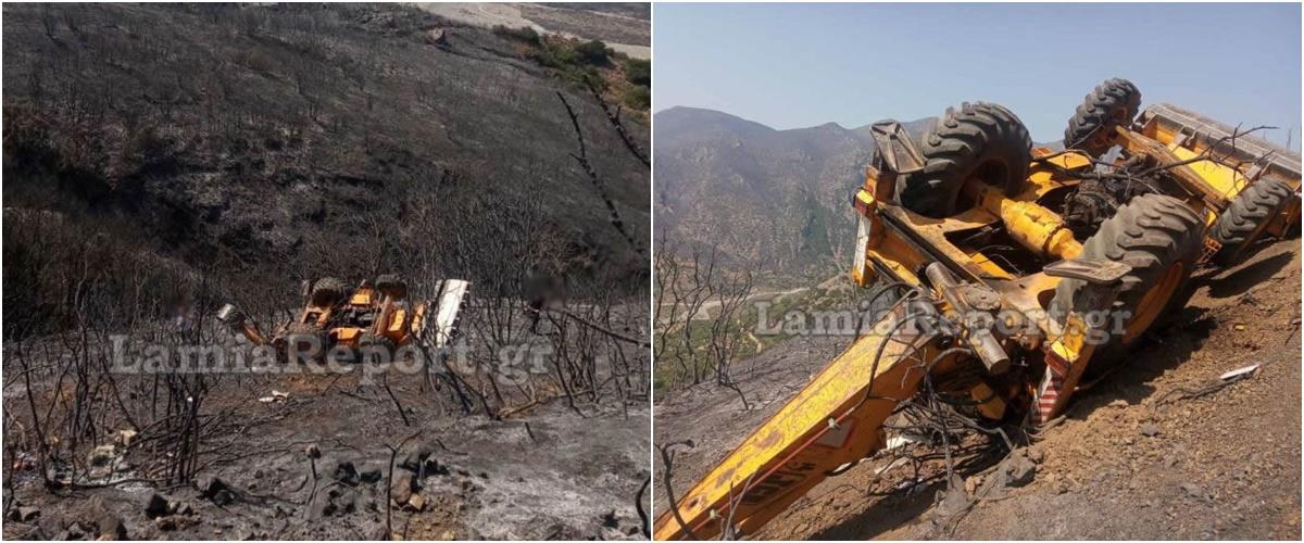 Τραγική κατάληξη είχε το ατύχημα οδηγού μπουλντόζας, που πραγματοποιούσε εργασίες για περιορισμό της φωτιάς στη Φθιώτιδα και έπεσε σε χαράδρα τριάντα μέτρων.