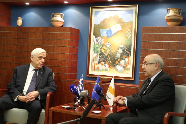 Στο πλαίσιο της συζήτησης που οι δύο τους είχαν, μέρος της οποίας ήταν ανοιχτό για τους δημοσιογράφους, ο Προκόπης Παυλόπουλος επεσήμανε ότι είναι απαράδεκτο και όνειδος για τη διεθνή κοινότητα και την ΕΕ να συνεχίζεται η διχοτομική κατάσταση στην Κύπρο και υπέδειξε ότι η όποια λύση πρέπει να είναι λύση συμβατή με το διεθνές και το ευρωπαϊκό δίκαιο η οποία διασφαλίζει την Κυπριακή Δημοκρατία ως κράτος κυρίαρχο στη διεθνή κοινότητα και ως κράτος που είναι πλήρες μέλος της ΕΕ και της Ευρωζώνης.