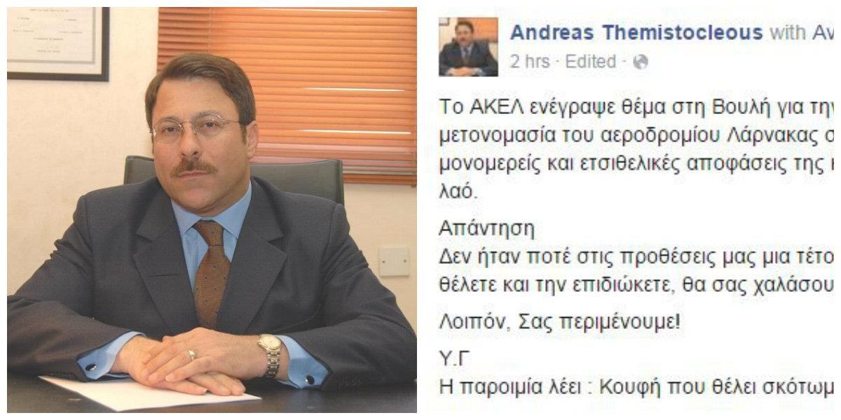 Πανέτοιμος για συζήτηση της μετονομασίας του αεροδρομίου σε Γλαύκος Κληρίδης δηλώνει ο βουλευτής του ΔΗΣΥ Ανρέας Θεμιστοκλέους, ο οποίος με ανάρτηση στο λογαριασμό του στο Facebook δείχνει και τις προθέσεις του.