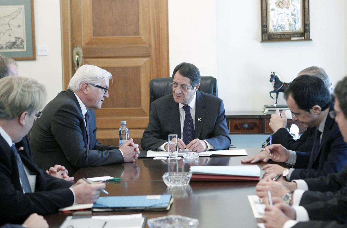 Κατά τη σημερινή συνάντηση του Προέδρου της Δημοκρατίας με τον Γερμανό Υπουργό Εξωτερικών συζητήθηκε, επίσης, η κατάσταση στην περιοχή, στη Μέση Ανατολή και ειδικότερα ο ρόλος ο που μπορεί η Κυπριακή Δημοκρατία να διαδραματίσει προς αντιμετώπιση προβλημάτων της περιοχής».
