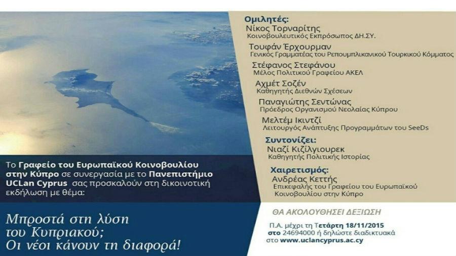 Το γραφείο του Ευρωπαϊκού Κοινοβουλίου στην Κύπρο, σε συνεργασία με το Πανεπιστήμιο UCLan Cyprus πραγματοποιούν εκδήλωση με θέμα:  «Μπροστά στη λύση του Κυπριακού – Οι νέοι κάνουν τη διαφορά».