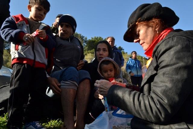 Με δάκρυα στα μάτια προϋπαντεί από το πρωί στις ακτές νότια της πόλης της Μυτιλήνης εκατοντάδες πρόσφυγες και μετανάστες που φτάνουν στο νησί, η γνωστή ηθοποιός του Χόλιγουντ και ακτιβίστρια Σούζαν Σάραντον.