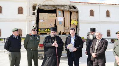 Ο Υπουργός Άμυνας Χριστόφορος Φωκαΐδης, συνοδευόμενος από τον Υπαρχηγό της Εθνικής Φρουράς Αντιστράτηγο Αντρέα Παπαπαύλου, παρέδωσε μισό τόνο τρόφιμα στον Πανιερότατο Μητροπολίτη Ταμασού και Ορεινής Ησαΐα για την ενίσχυση του κοινωνικού έργου της Μητρόπολης. Σύμφωνα με επίσημη ανακοίνωση, ανάλογες ποσότητες τροφίμων έχουν διανεμηθεί στις υπόλοιπες Μητροπόλεις σε όλη την Κύπρο και αποτελούν προϊόν παγκύπριας εκστρατείας ανάμεσα στο στρατιωτικό και το πολιτικό προσωπικό του Υπουργείου Άμυνας και της Εθνικής Φρουράς. Συνολικά έχουν συγκεντρωθεί φέτος οκτώμισι τόνοι τροφίμων.