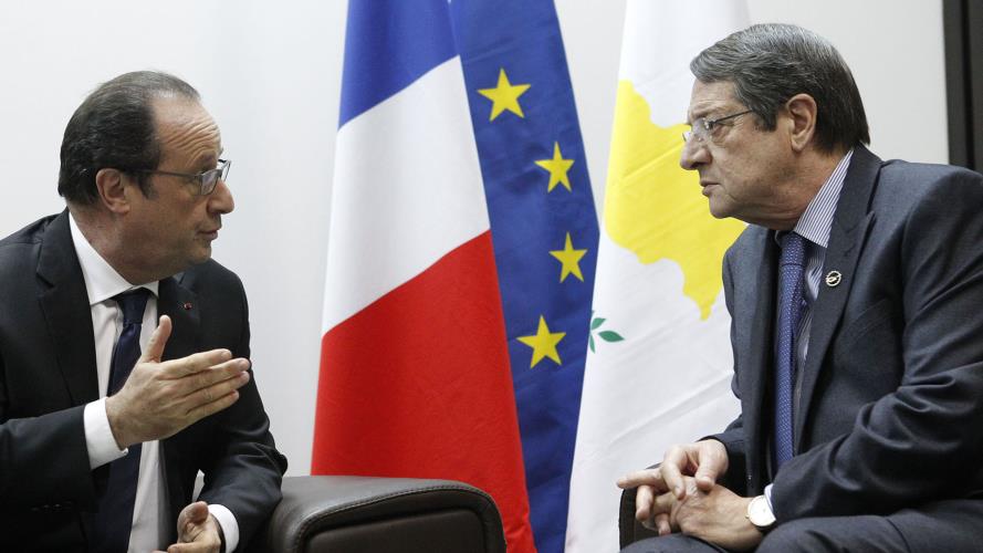 Σύμφωνα με επίσημη ανακοίνωση, ο κ. Ολάντ, ο οποίος έφθασε στην Κύπρο στις 7.25μμ, με στρατιωτικό ελικόπτερο από το αεροπλανοφόρο Charles De Gaule, που βρίσκεται στη Μεσόγειο, παρακάθεται αυτή την ώρα σε συνάντηση με τον Πρόεδρο Αναστασιάδη.