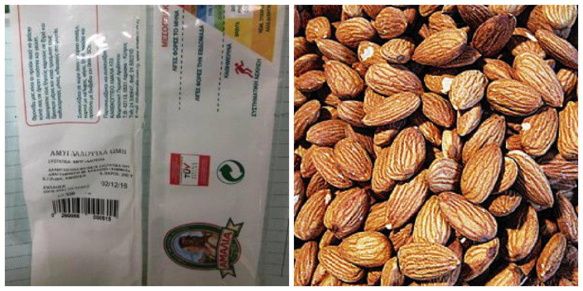 Ακατάλληλη συσκευασία αμυγδαλόψυχας ωμής με την ονομασία “Αμαλία” εντοπίστηκε στην κυπριακή αγορά, η οποία περιέχει τόσο Αφλατοξίνη Β1, όσο και Ολικές Αφλατοξίνες, σε ποσοστό μεγαλύτερο του επιτρεπόμενου από την Κοινοτική νομοθεσία.