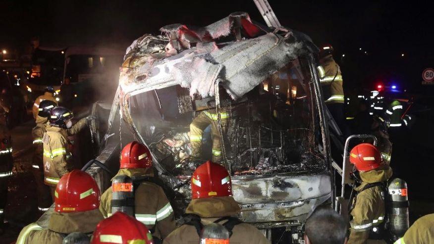 Στο λεωφορείο είχε επιβιβαστεί μία ομάδα συνταξιούχων της χημικής βιομηχανίας, όταν ξέσπασε φωτιά σε αυτό, κοντά στο Ούλσαν.