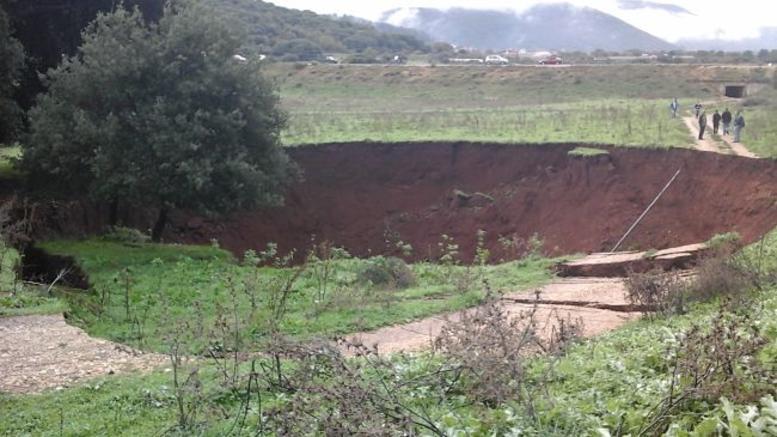 Από τύχη την ώρα της κατάρρευσης του εδάφους, δεν βρίσκονταν εκεί ο βοσκός και τα ζώα.