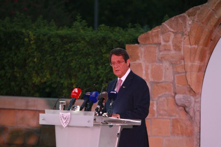 Ο Πρόεδρος Αναστασιάδης ανέφερε ότι “διεκδικούμε μία πατρίδα, όπου όλοι οι κάτοικοί της θα παλεύουν καθημερινά για την πρόοδο και την προοπτική, για να κάνουν αυτό το κομμάτι γης ένα παράδειγμα ειρηνικής συμβίωσης και προκοπής. Αυτή είναι η μόνη συνταγή, από την οποία όλοι έχουμε να ωφεληθούμε”, σημείωσε.