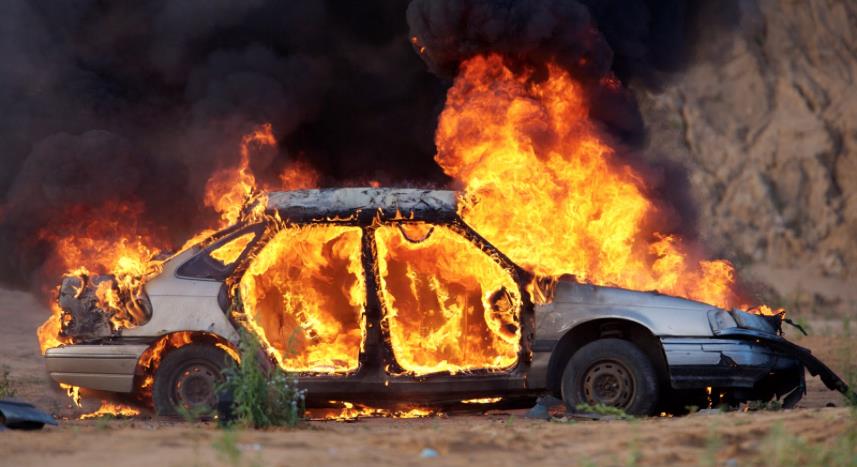 Φωτιά σε χωράφι με παλιά αμαξώματα