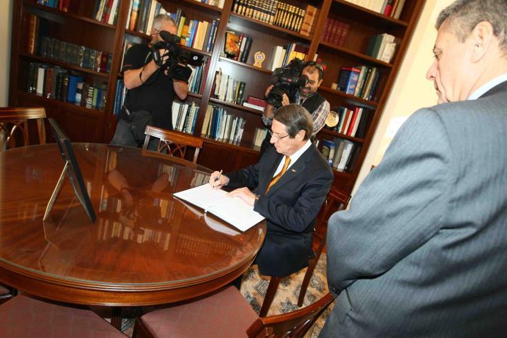 Ο Πρόεδρος της Δημοκρατίας Νίκος Αναστασιάδης υπέγραψε σήμερα το βιβλίο συλλυπητηρίων, για το θάνατο του πρώην Προέδρου της Ελληνικής Δημοκρατίας, Κωστή Στεφανόπουλου, το οποίο ανοίχθηκε στην Πρεσβεία της Ελλάδας, στη Λευκωσία.