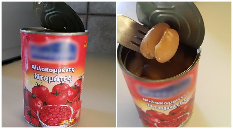 Μια αναπάντεχη έκπληξη περίμενε Κύπρια καταναλωτή που αγόρασε κονσέρβα με ψιλοκομμένες ντομάτες αλλά όταν το άνοιξε αντίκρισε φασόλια γίγαντες.