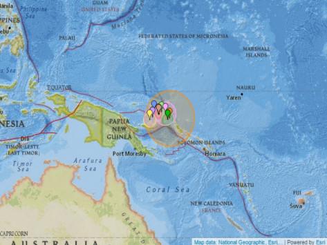 Σεισμός μεγέθους 8 βαθμών έγινε σε απόσταση 157 χιλιομέτρων ανατολικά της πόλης Ραμπάουλ, στην Παπούα Νέα Γουινέα.