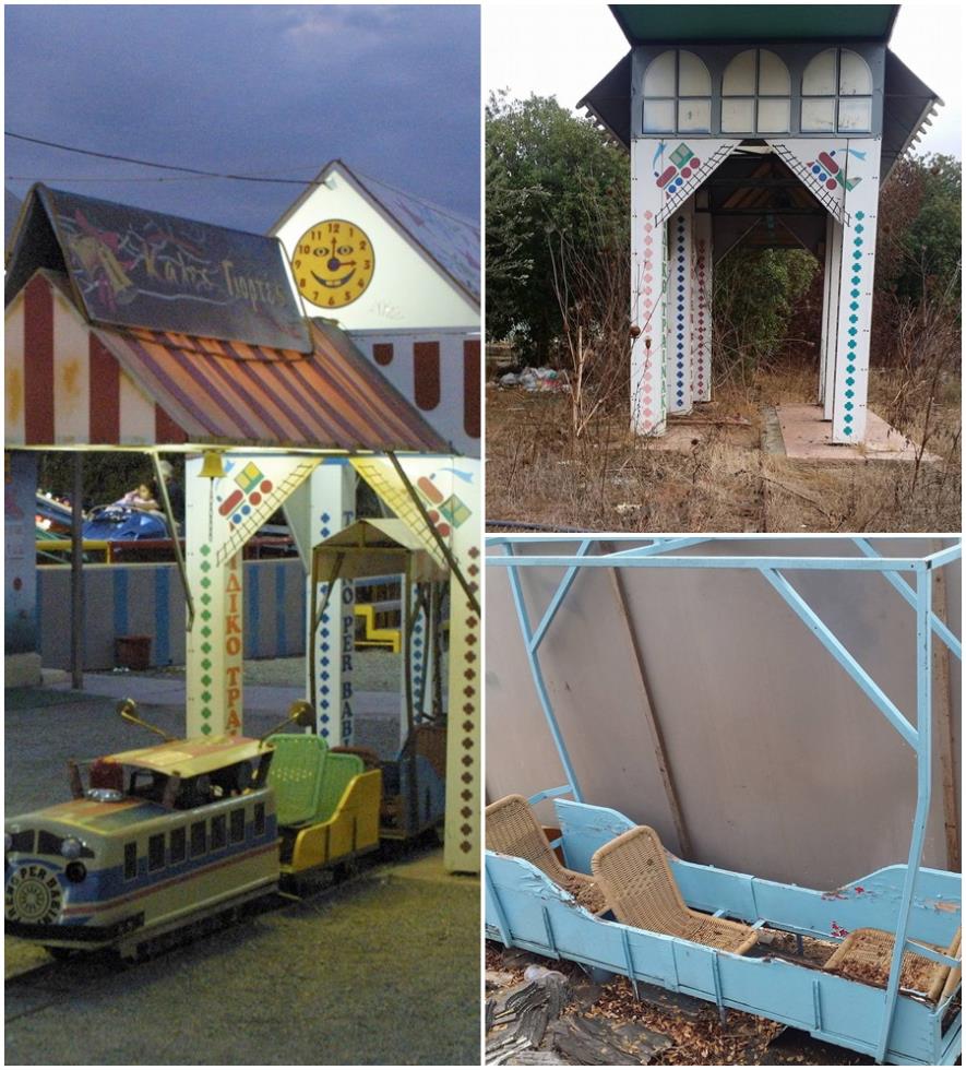 Τώρα όμως τα πράγματα δεν είναι τα ίδια. Το τρενάκι δεν είναι εκεί να κάνει βόλτες φορτωμένο παιδιά, οι διάσημές κούνιες «Αφροδίτη» δεν «ζωντανεύουν» το χώρο με τις φωνές παιδιών παρά μόνο από τον ήχο της βροχής…