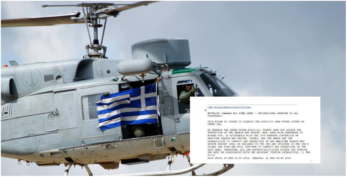 Την ώρα που βρίσκεται σε εξέλιξη η επιχείρηση για τον εντοπισμό των μελών του πληρώματος του ελικοπτέρου του πολεμικού ναυτικού που κατέπεσε στη Νήσο Κίναρο οι Τούρκοι με NOTAM αμφισβητούν την επιχείρηση έρευνας και διάσωσης.