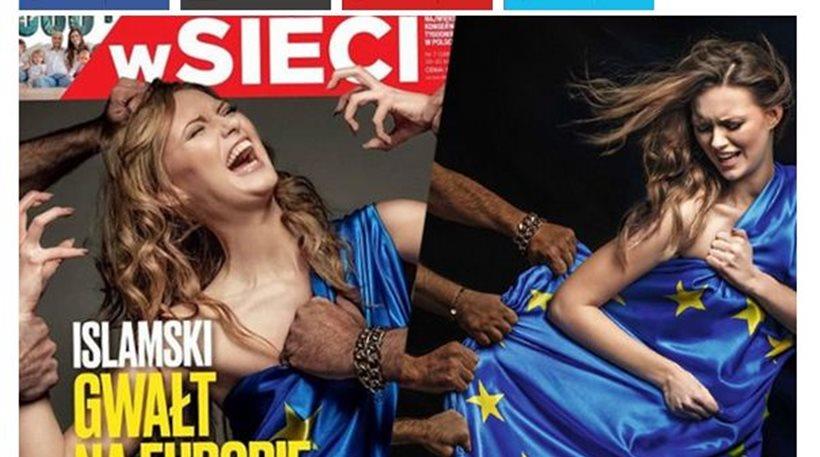 Στο εξώφυλλο του πολωνικού περιοδικού «wSieci», μια πανέμορφη λευκή γυναίκα, με καλυμμένο το γυμνό σώμα της με την σημαία της Ε.Ε, δέχεται επίθεση από μια ομάδα μελαψών ανδρών , υπό τον τίτλο: «Ο Ισλαμικός βιασμός της Ευρώπης». Ο ένας, μάλιστα, την τραβάει από τα μαλλιά με την ίδια να αντιστέκεται...