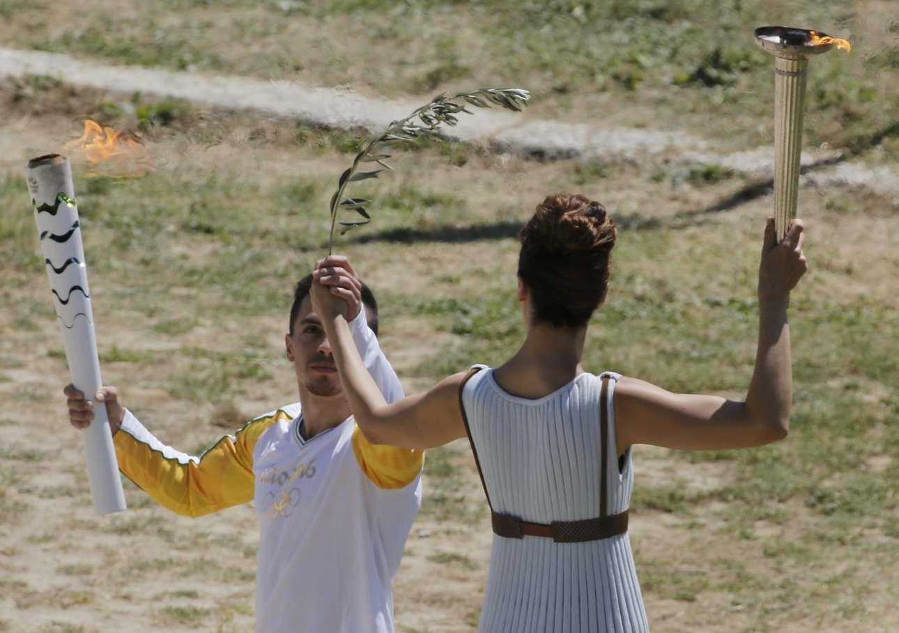 Ιδιαίτερα θερμή ήταν η υποδοχή της Ολυμπιακής Φλόγας στην πρώτη μέρα της Λαμπαδηδρομίας επί ελληνικού εδάφους στο δρόμο για το Ρίο.
