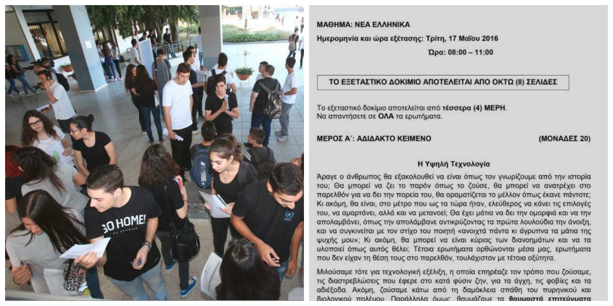 Το μάθημα των Νέων Ελληνικών ήταν το πρώτο και σύμφωνα με τις πρώτες εντυπώσεις μαθητών, ήταν ένα βατό δοκίμιο με θέματα τα οποία είχαν διδαχθεί και αρκετοί ανέμεναν ότι θα τα συναντήσουν και στο γραπτό.
