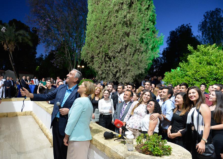 Η κοινωνική πρόοδος, σημείωσε, μπορεί να επιτευχθεί σε ένα ειρηνικό περιβάλλον και πρόταξε την ρήση του Ατατούρκ “ειρήνη στη χώρα, ειρήνη στον κόσμο”. Το Κυπριακό, είπε, είναι ένα πρόβλημα που κατά τη δική του άποψη πρέπει να γλυτώσουν από την αβεβαιότητα του μέλλοντος οι νέοι για να καταλήξει λέγοντας ότι μέχρι σήμερα δεν έχει μετρήσει πόσες σέλφι έχουν βγάλει οι νέοι μαζί του αλλά απόψε ήταν η σειρά του. Και έβγαλε φωτογραφίες σέλφι ο ίδιος τις οποίες ανέβασε μετά στον προσωπικό του λογαριασμό σε σελίδα κοινωνικής δικτύωσης.