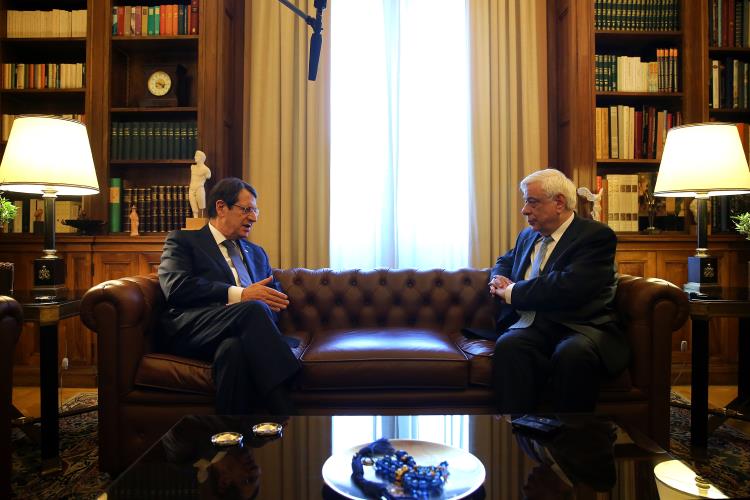 Καλωσορίζοντας τον Πρόεδρο Αναστασιάδη στην Αθήνα, ο Πρόεδρος Παυλόπουλος ανέφερε “Σας καλωσορίζουμε, πάντα με μεγάλη χαρά, στην Αθήνα. Θα πω το αυτονόητο και μόνο: Ότι Ελλάδα και Κύπρος, Κύπρος και Ελλάδα είναι απολύτως συντονισμένες σε ό,τι αφορά την επίλυση του Κυπριακού. Λύση για το Κυπριακό μπορεί να υπάρξει μόνο στη βάση των αποφάσεων των Οργάνων του Οργανισμού Ηνωμένων Εθνών και ιδίως του Συμβουλίου Ασφαλείας και στη βάση του ευρωπαϊκού κεκτημένου”.