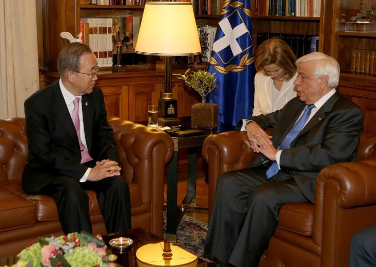 Η προσφυγική κρίση, το Κυπριακό, αλλά και ο σεβασμός των μνημείων παγκόσμιας κληρονομιάς ήταν τα θέματα που έθιξε στην ομιλία του, υποδεχόμενος τον Γενικό Γραμματέα του ΟΗΕ στο Προεδρικό Μέγαρο στην Αθήνα, ο Προκόπης Παυλόπουλος.
