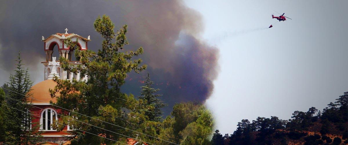 Σε πύρινο κλοιό εξακολουθεί να βρίσκεται η Κύπρος. Οι λέξεις φτωχές για να αποτυπώσουν την τραγικότητα της κατάστασης. Η βιβλική καταστροφή τεράστια. Οι αδηφάγες φλόγες καίνε τα πάντα στο πέρασμα τους. Πυροσβέστες έπεσαν μαχόμενοι... Άλλη μια μαύρη σελίδα στην ιστορία της Κύπρου…