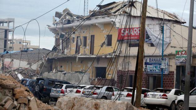 Το ξενοδοχείο Naasa Hablood όπου συχνάζουν πολιτικοί και μέλη της Διασποράς, στο βόρειο Μογκαντίσου, ήταν ο στόχος της επίθεσης που πραγματοποιήθηκε με εκρηκτικά και αυτόματα όπλα.