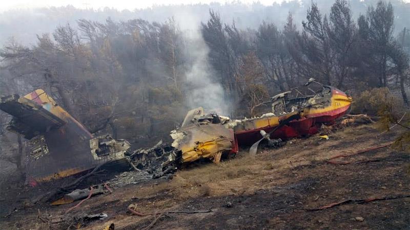 Η φωτογραφία του πυροσβεστικού αεροσκάφους Canadair CL-215 που λάμβανε μέρος στην προσπάθεια κατάσβεσης της πυρκαγιάς στα Δερβενοχώρια και κατέπεσε από μηχανική βλάβη προκαλεί σοκ.