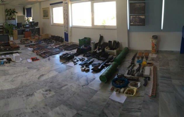 Στη δημοσιότητα έδωσε η ΕΛ.ΑΣ. τα κατασχεθέντα :45 πιστόλια, 9 πολεμικά τυφέκια, 3 χειροβομβίδες, 22 καραμπίνες-κυνηγητικά όπλα και πάνω από 26.000 φυσίγγια, κατά την επιχείρηση εξάρθρωσης της ποληυμελούς εγκληματικής οργάνωσης η οποία δραστηριοποιείτο συστηματικά από το 2007 στην παράνομη εισαγωγή, διακίνηση και εμπορία όπλων και πυρομαχικών.