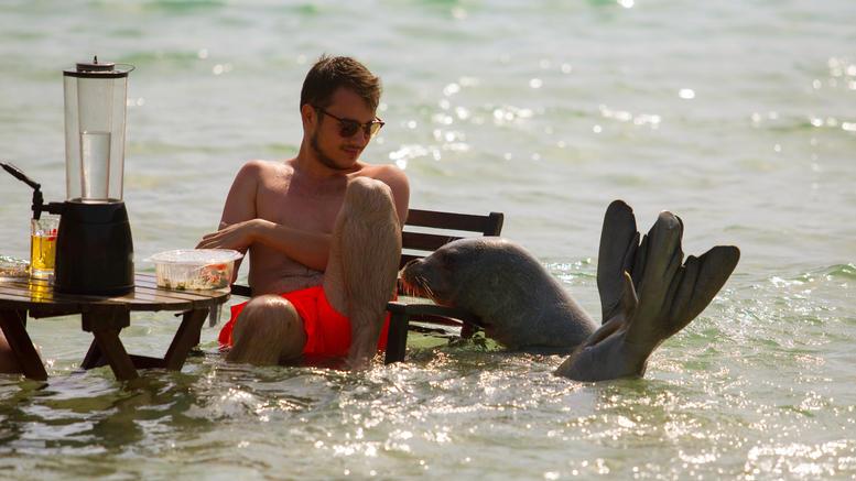 Η επονομαζόμενη Αργυρώ όχι μόνο βγαίνει στην στεριά αλλά ξαπλώνει στις ξαπλώστρες και απολαμβάνει την συντροφιά των ανθρώπων.