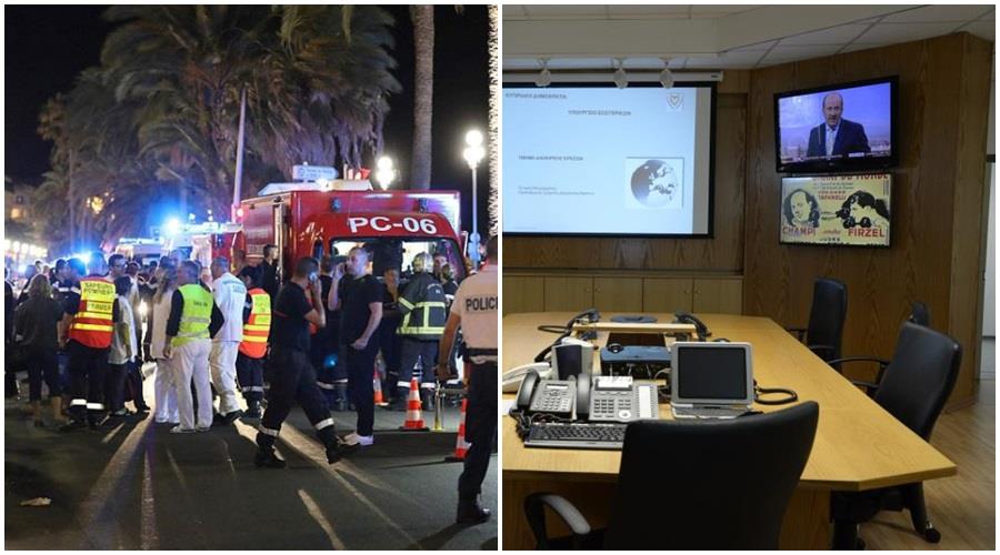 Εντωμεταξύ στο Υπουργείο Εξωτερικών λειτουργεί το Κέντρο Διαχείρισης Κρίσεων με το οποίο μπορούν να επικοινωνούν οι πολίτες σε σχέση με το χθεσινοβραδινό τρομοκρατικό χτύπημα. Το τηλέφωνο του Κέντρου Διαχείρισης Κρίσεων είναι 22651060 και 22651295 και το τηλέφωνο της κυπριακής πρεσβείας στην Γαλλία είναι 0033147208628.
