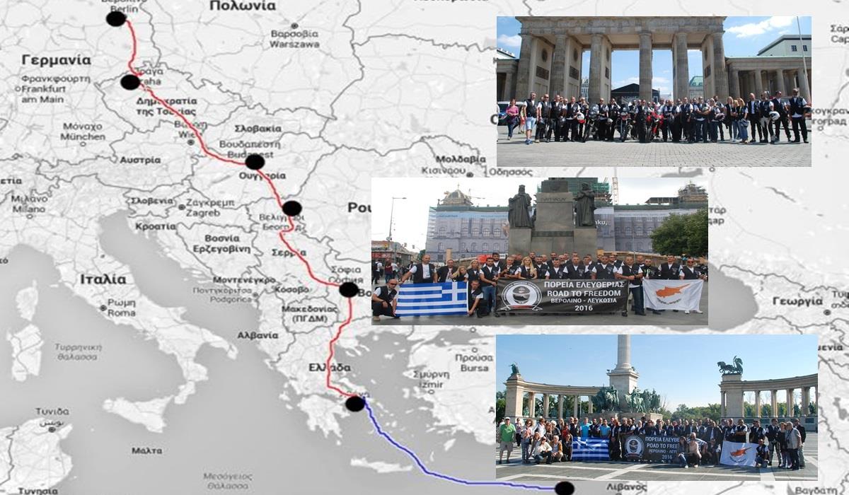 Η μεγάλη πορεία ξεκίνησε από το Βερολίνο και συγκεκριμένα την Πύλη του Βραδεμβούργου. Εκεί τους μοτοσικλετιστές περίμεναν κύπριες φοιτήτριες, οι οποίες μοίρασαν λουλούδια στα μέλη της Πορείας. Επίσης, οι οργανωτές της πορείας διένειμαν διαφωτιστικό υλικό στους περαστικούς ενημερώνοντάς τους για την τουρκική εισβολή και κατοχή του νησιού μας, αλλά, βεβαίως, και για τη θυσία των δύο ηρωομαρτύρων μας.
