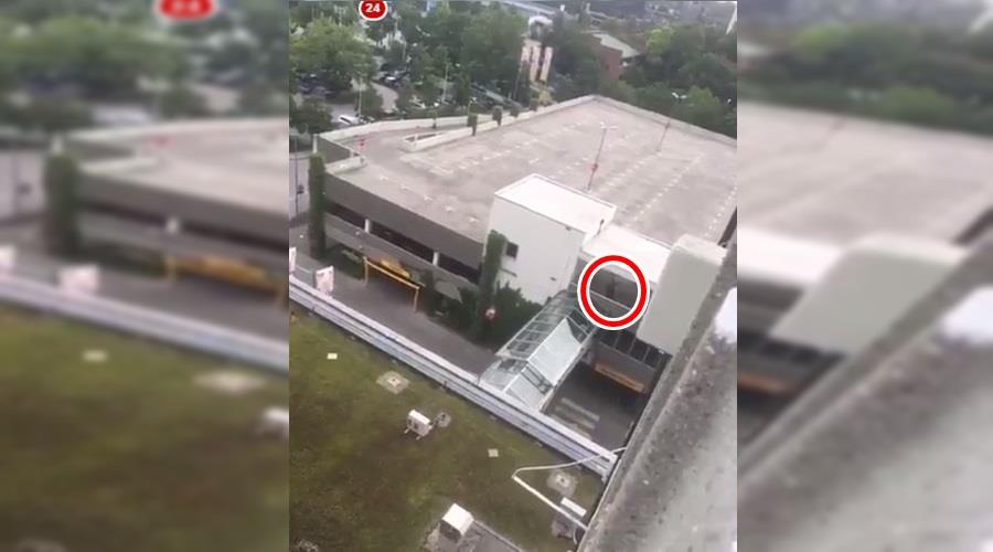Στη συνέχεια ο άνθρωπος που καταγράφει το βίντεο καλύπτεται καθώς ο ένοπλος αρχίζει να πυροβολεί και ο άνδρας από το μπαλκόνι τον βρίζει ξανά.