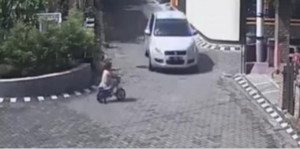 Σε περιοχή της Ινδίας ένα κοριτσάκι παίζει αμέριμνο με το ποδήλατό του, όταν πετάγεται μπροστά σε ένα αυτοκίνητο, σε σημείο όπου η οδηγός του αυτοκινήτου δεν μπορούσε να το δει.