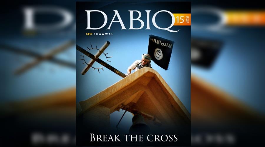 Το περιοδικό Dabiq, το προπαγανδιστικό όργανο των τζιχαντιστών, καλεί τους Χριστιανούς να «σπάσουν τον σταυρό», στο τελευταίο του τεύχος και τους δίνει δύο επιλογές: να ρισκάρουν να σκοτωθούν στον «μάταιο» πόλεμο ενάντια στο Ισλαμικό Κράτος ή να ασπαστούν το Ισλάμ και να μπουν «στους κήπους του παραδείσου».