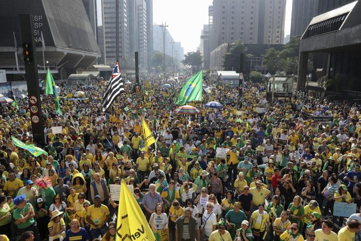 Από τα μεγάφωνα που είχαν τοποθετήσει οι διοργανωτές πάνω σε φορτηγά ακούγονταν ο εθνικός ύμνος αλλά και μελωδίες σάμπα. Σε ένα πανό μπορούσε να διαβάσει κανείς "η Ντίλμα έξω και η φυλακή για τον Λούλα" τον προκάτοχό της στον προεδρικό θώκο, στον οποίο ασκήθηκαν διώξεις στο πλαίσιο της έρευνας για το σκάνδαλο διαφθοράς, με επίκεντρο τον πετρελαϊκό κολοσσό Petrobras.