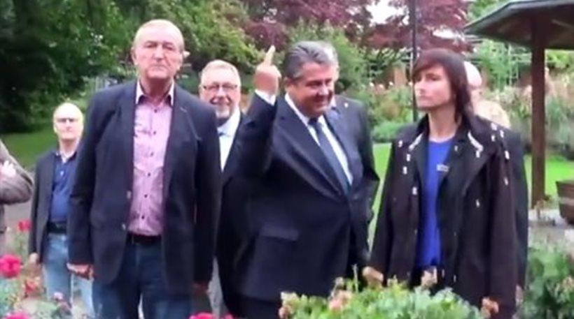 Ο Γερμανός αντικαγκελάριος, Ζίγκμαρ Γκάμπριελ, δείχνει το μεσαίο του δάχτυλο σε ομάδα ακροδεξιών που εμφανίστηκαν μπροστά του σε εκδήλωση στην Κάτω Σαξονία και το βίντεο κάνει το γύρο του Διαδικτύου.