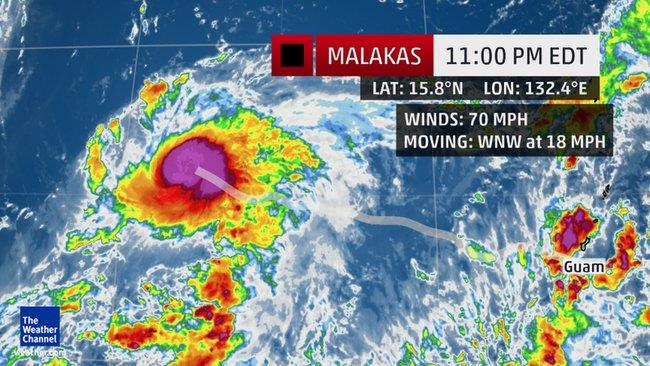 Την Τρίτη το βράδυ η τροπική καταιγίδα Malakas βρισκόταν περίπου 800 μίλια ανατολικά της Μανίλα, με κατεύθυνση προς τα βόρεια-βορειοανατολικά