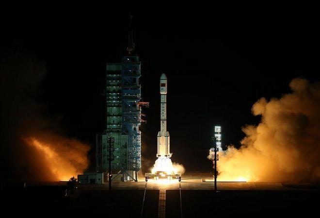 Όπως μετέδωσαν κρατικά μέσα ενημέρωσης της Κίνας, ο πύραυλος Long March-2F T2, που μεταφέρει το "διαστημικό εργαστήριο", απογειώθηκε επιτυχώς γύρω στις 17.04 (ώρα Ελλάδας) από τη βάση του Τζιουκουάν, στην έρημο Γκόμπι.