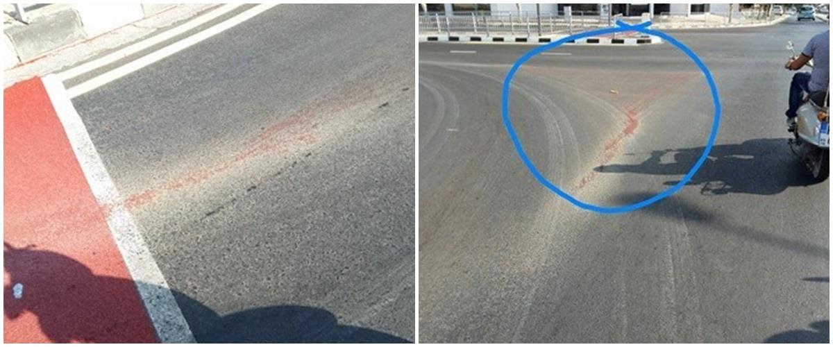 Υπολείμματα άμμου του συγκεκριμένου υλικού έχει απλωθεί και στο οδόστρωμα με αποτέλεσμα να δημιουργεί επικίνδυνες προϋποθέσεις για τους δικυκλιστές.