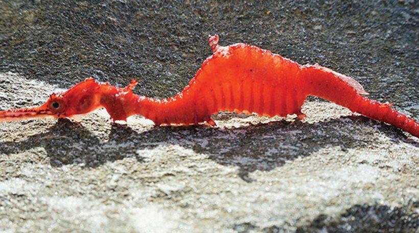 Τώρα, για πρώτη φορά, οι επιστήμονες παρατήρησαν τον κόκκινο δράκο να κολυμπά ελεύθερος στην άγρια φύση. Είναι χρωματισμένος με βαθύ κόκκινο και μοιάζει αρκετά με ιππόκαμπο το είδος που αποκαλούμε θαλάσσιο άλογο.