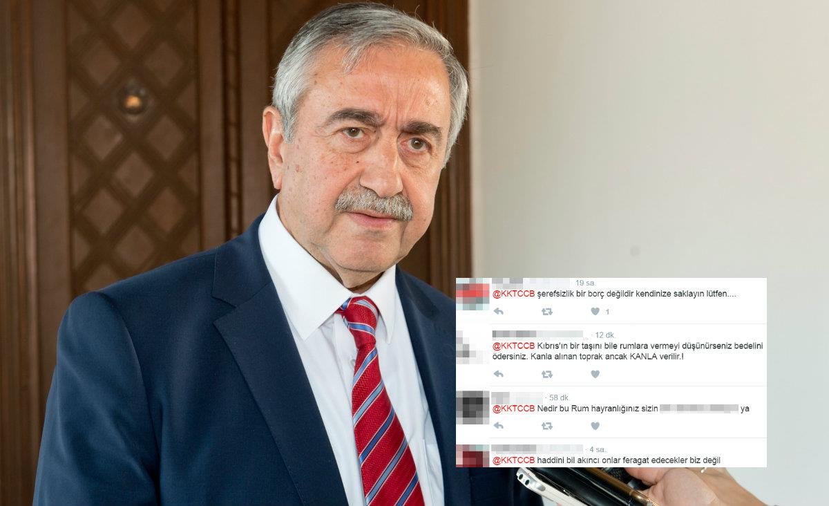 Σύμφωνα με την εφημερίδα, που δημοσιεύει μηνύματα στην “επίσημη” σελίδα σε μέσα κοινωνικής δικτύωσης με σβησμένες κάποιες λέξεις, ο Τ/κ ηγέτης κατηγορείται για προδοσία από όσους τίθενται ενάντια στην παραχώρηση εδάφους στις διαπραγματεύσεις.