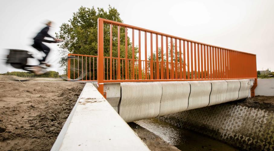 Η πρώτη στον κόσμο τρισδιάστατα εκτυπωμένη γέφυρα άνοιξε στην μικρή πόλη Γκέμερτ στη νοτιοανατολική Ολλανδία και μπορούν να τη διασχίσουν πεζοί, ποδήλατα και οχήματα. Έχει μήκος οκτώ μέτρων, πλάτος 3,5 μέτρων και έχει δημιουργηθεί από περίπου 800 διαδοχικά στρώματα ενισχυμένου με χάλυβα σκυροδέματος που βγήκαν από τον εκτυπωτή.