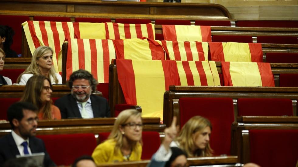 «Άρχεται η συνεδρίασις», δήλωσε η πρόεδρος Κάρμε Φορκαδέλ, προτού δώσει τον λόγο σε εκπρόσωπο της αντιπολίτευσης, τον Κάρλος Καριθόσα. Ο τελευταίος, ανεμίζοντας το σχέδιο ψηφίσματος, είπε απευθυνόμενος στον πρόεδρο Κάρλες Πουτζντεμόν: «Αυτό το έγγραφο το οποίο συντάξατε καταστρέφει ό,τι πιο ιερό, τη συνύπαρξη» στην Καταλονία.