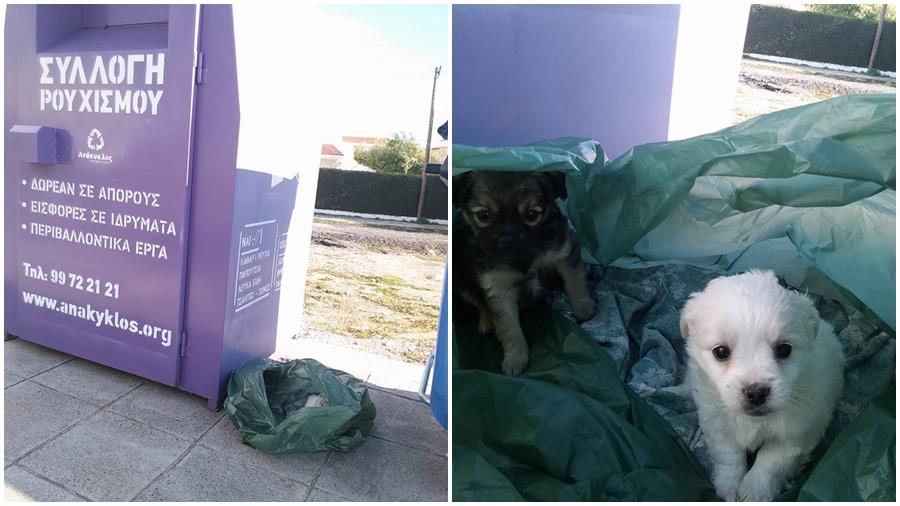 Για ακόμη μια φορά η κοινωνία μας έδειξε το άσχημο της πρόσωπο, αφού δύο κουτάβια βρέθηκαν εγκλωβισμένα μέσα σε σακούλα σκουπιδιών δίπλα από κάδο ανακύκλωσης ρούχων στην Πάφο.