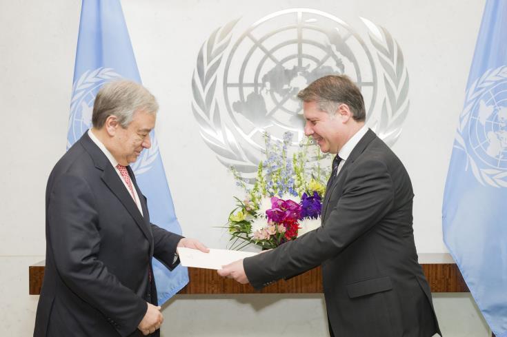 Μαζί με τον κ. Κορνηλίου τα διαπιστευτήριά τους επέδωσαν στον ΓΓ του ΟΗΕ και οι μόνιμοι αντιπρόσωποι της Μαλαισίας και της Σάντα Λουτσία.